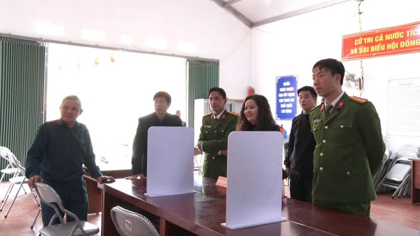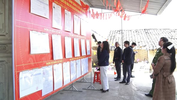Tại các thôn, Đoàn đã kiểm tra thực tế việc lập và niêm yết danh sách cử tri, niêm yết dach sách chính thức, tiểu sử tóm tắt những người ứng cử đại biểu Quốc hội, đại biểu, HĐND các cấp, kiểm tra khu vực bỏ phiểu, việc nhận và phân phối các tài liệu, phiếu bầu cử, hòm phiếu, kiểm tra về hạ tầng, trang thiết bị công nghệ thông tin, công tác tuyên truyền cổ động ngày bầu cử…