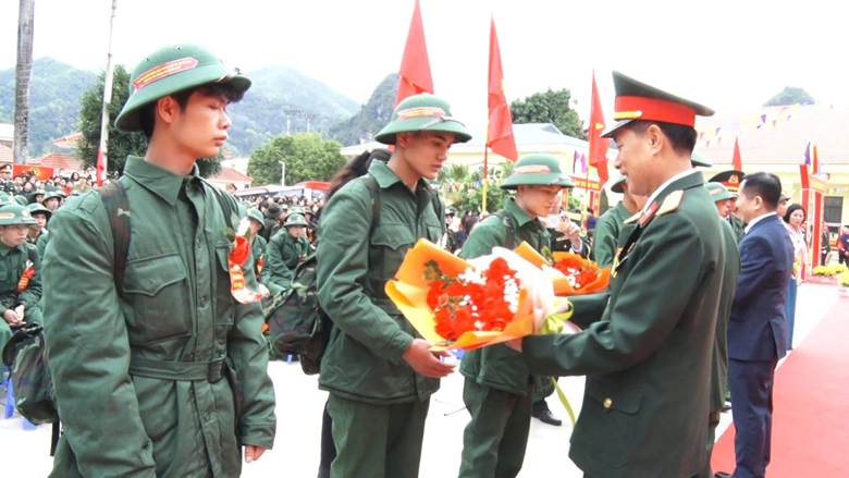 Tại buổi Lễ đại diện các tân binh bày tỏ quyết tâm phát huy truyền thống cách mạng của quê hương; nỗ lực rèn luyện, hoàn thành tốt mọi nhiệm vụ, góp sức vào sự nghiệp xây dựng và bảo vệ Tổ quốc. Các đại biểu và đông đảo người dân tặng hoa, động viên và chúc các tân binh vững bước lên đường nhập ngũ, hoàn thành xuất sắc nhiệm vụ được giao.