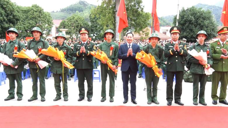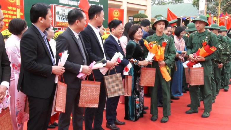 Phát biểu tại buổi lễ, đồng chí Nguyễn Văn Trường – TUV, Phó Chủ tịch HĐND tỉnh đánh giá cao sự phối hợp chặt chẽ, trách nhiệm của các đơn vị giao, nhận quân và tin tưởng rằng, trong môi trường mới, các tân binh sẽ được giáo dục, rèn luyện toàn diện, sớm trưởng thành, xứng đáng với truyền thống quê hương và niềm tin yêu của Nhân dân. Đồng chí đề nghị: Các cấp ủy, chính quyền tiếp tục thực hiện tốt chính sách hậu phương quân đội; quan tâm chăm lo đời sống vật chất, tinh thần cho gia đình quân nhân.