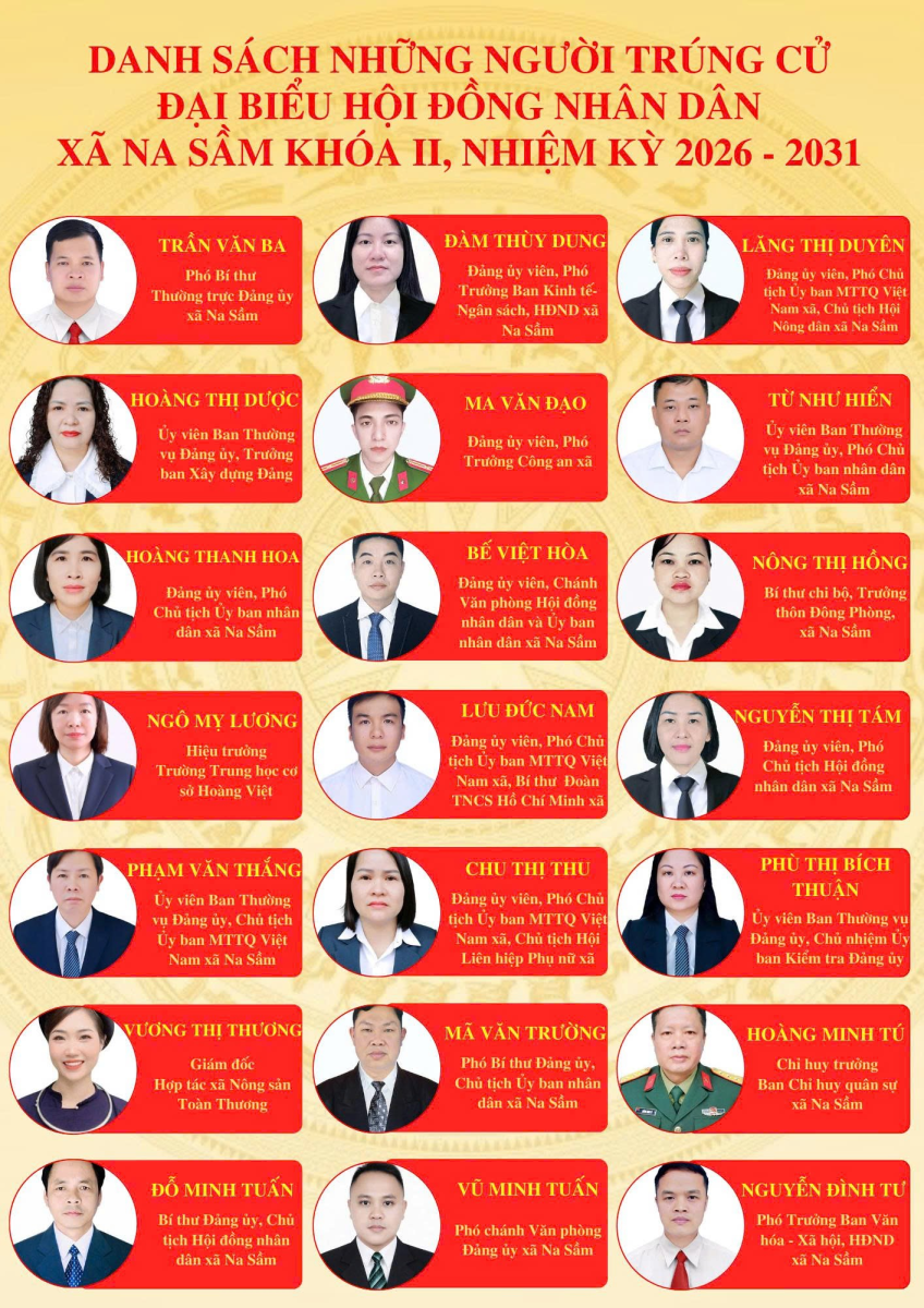 CÔNG BỐ DANH SÁCH NHỮNG NGƯỜI ỨNG CỬ ĐẠI BIỂU HĐND XÃ NA SẦM, NHIỆM KỲ 2026 - 2031