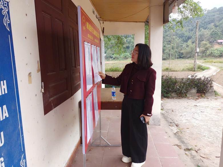 Tại các điểm kiểm tra, đoàn đã tập trung kiểm tra việc triển khai các nội dung phục vụ công tác bầu cử, trong đó trọng tâm là việc niêm yết danh sách cử tri, công tác trang trí khánh tiết tại khu vực bỏ phiếu. Qua kiểm tra cho thấy, các thôn đã thực hiện niêm yết danh sách cử tri đúng quy định, đồng thời chủ động chuẩn bị, trang trí khánh tiết đảm bảo trang trọng, đúng hướng dẫn, tạo không khí phấn khởi, nghiêm túc cho ngày bầu cử.