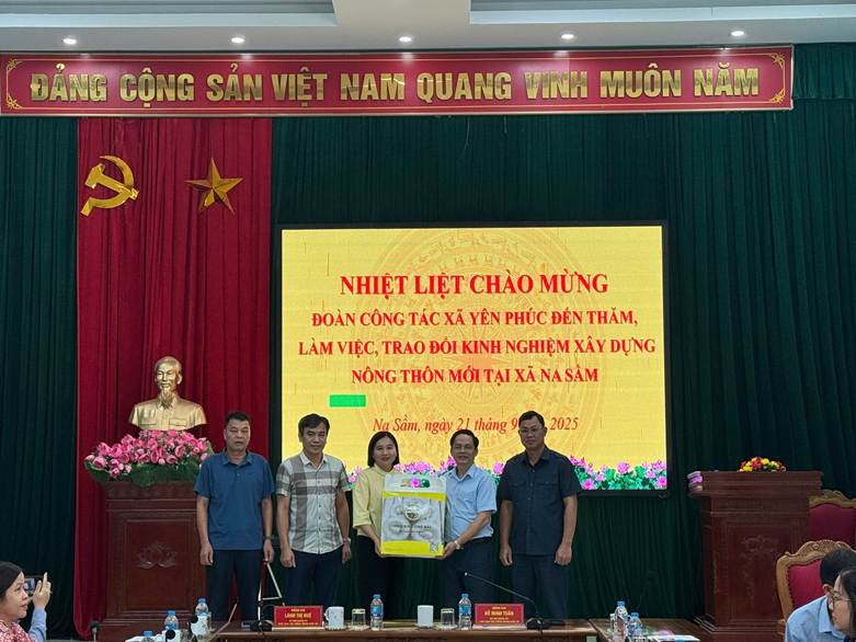 Ngày 21/9/2025, UBND xã Na Sầm đã đón tiếp đoàn công tác của xã Yên Phúc, tỉnh Lạng Sơn đến thăm, làm việc và trao đổi kinh nghiệm trong xây dựng nông thôn mới, đặc biệt là mô hình phát triển kinh tế từ cây maca trên địa bàn xã.