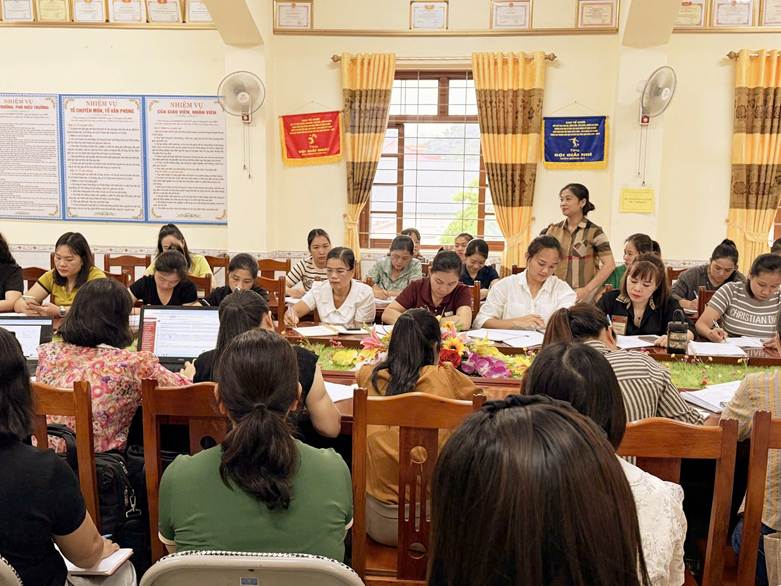 Tham dự tập huấn có Đ/c Luân Văn Thiện Phó trưởng phòng Văn hóa – Xã hội, Chuyên viên phụ trách giáo dục, Lãnh đạo, cán bộ quản lý và toàn thể giáo viên của 4 trường mầm non trên địa bàn xã.