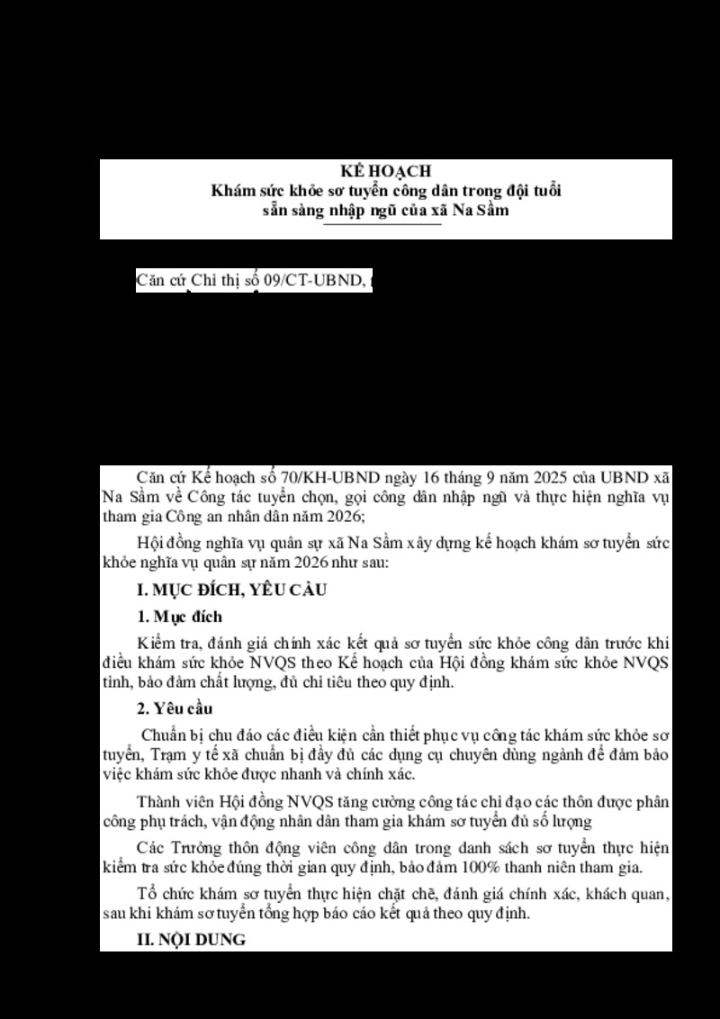 | Tiêu đề văn bản | Khám sức khỏe sơ tuyể n công dân trong đội tuổi sẵn sàng nhập ngũ của xã Na Sầm | ||